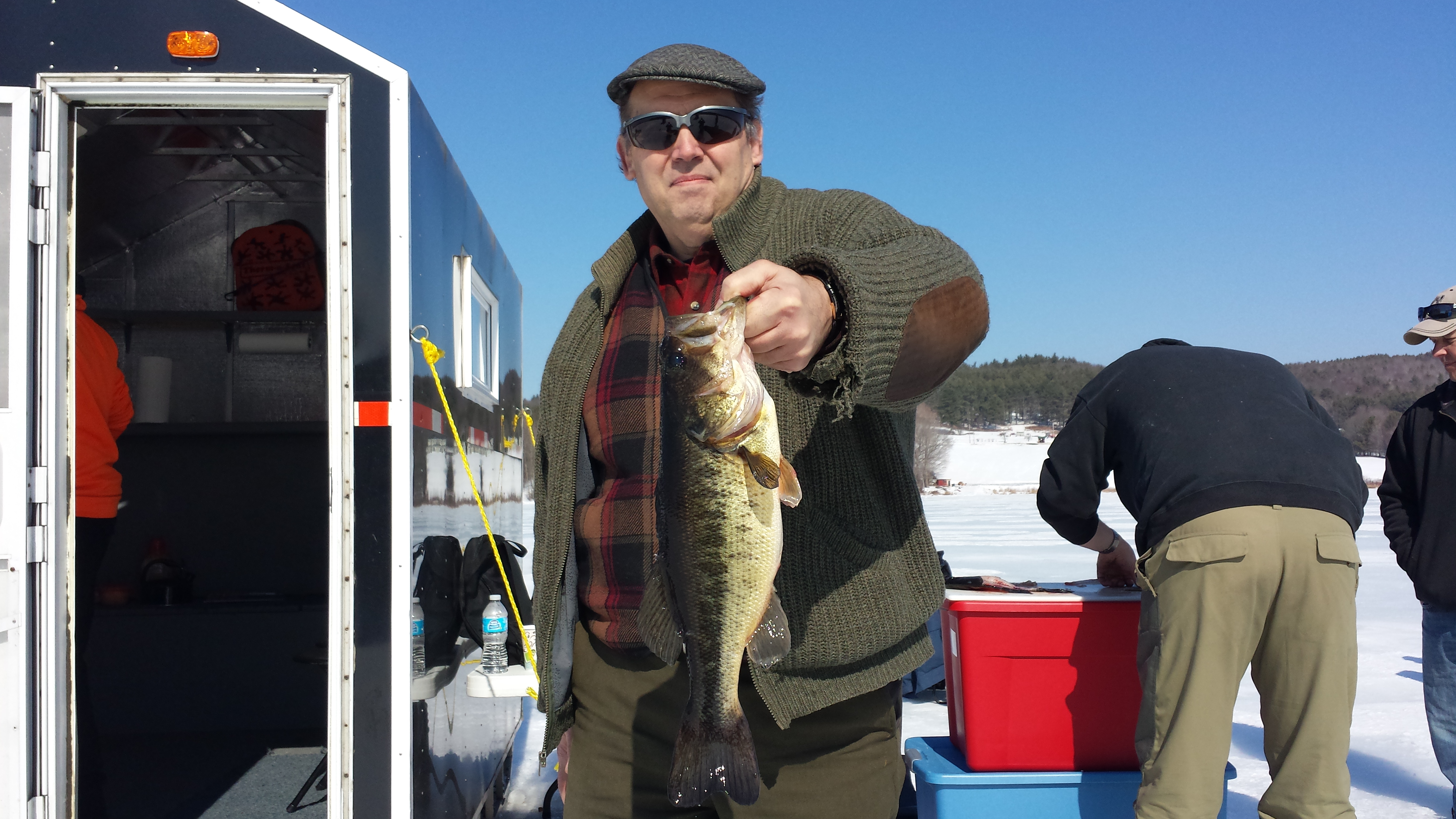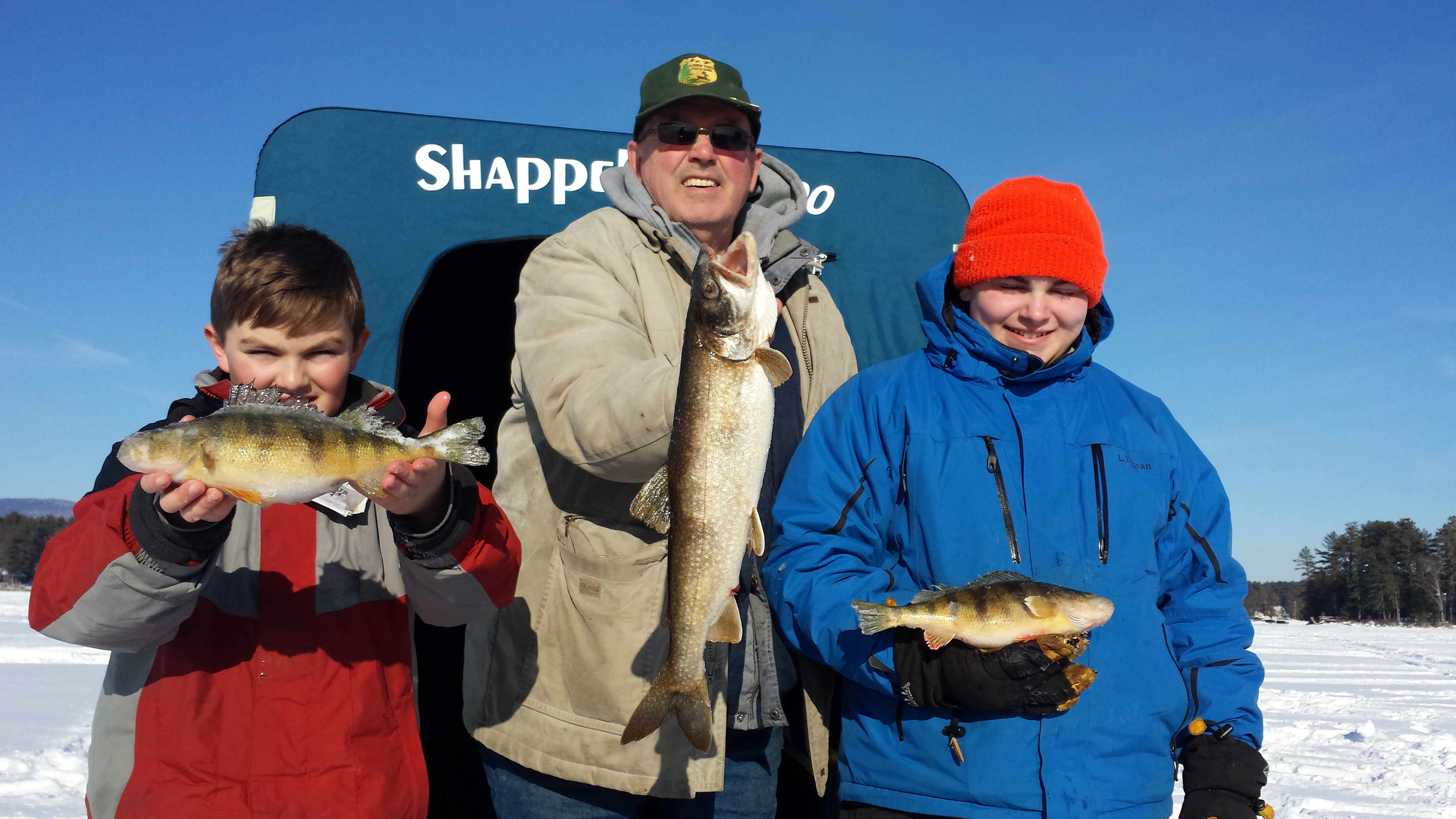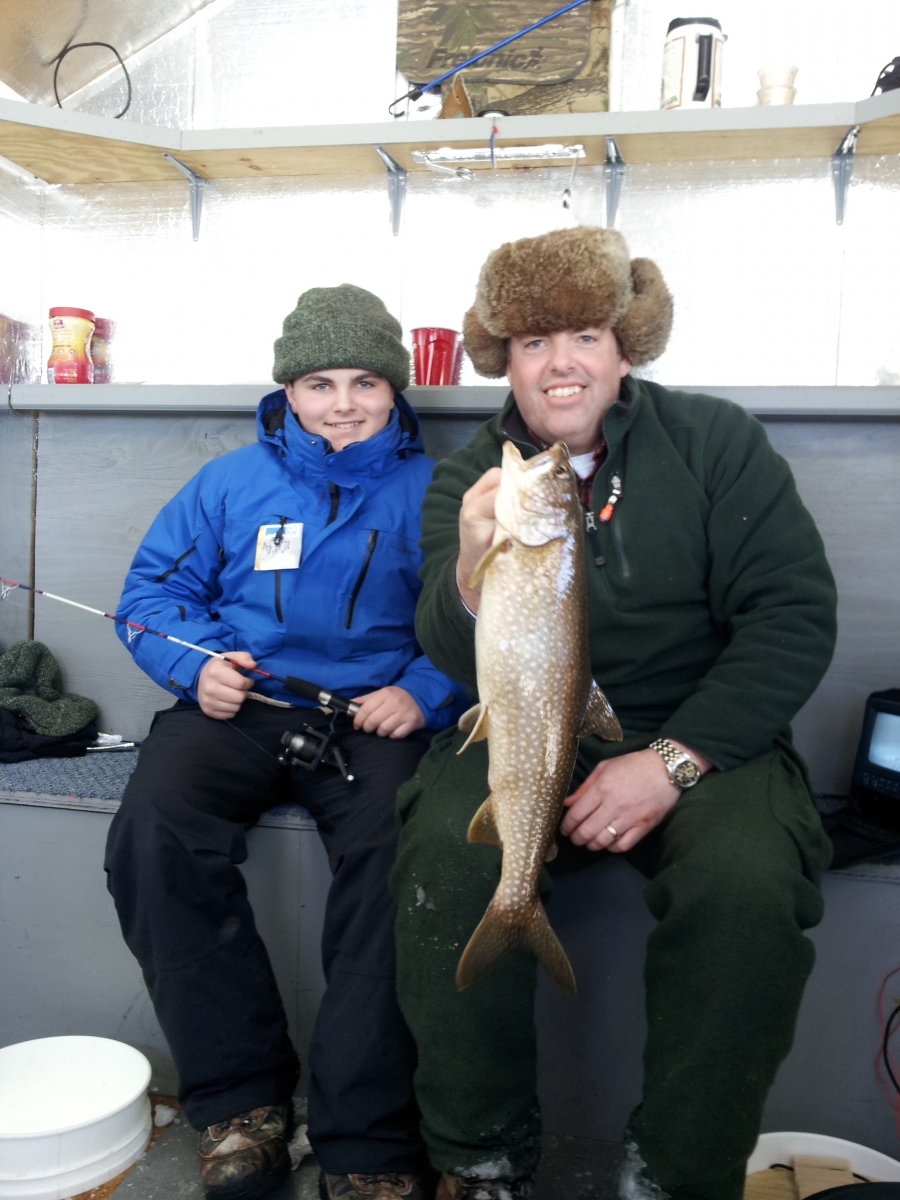 Few outdoor winter experiences can compare with watching the sun rise across a frozen lake while in pursuit of a trophy trout or enjoying the sun set while waiting for a big Cusk to take your line. After a day on the ice with us, you will have a whole new appreciation for the word “FLAG”! Ice fishing is one of our favorite classes for families and individuals. Come along with us and learn the secrets used by our licensed guides. For hardcore fishermen, we recommend fishing for Lake Trout, Rainbow Trout and Cusk. For great table fare and fast action for the kids (and adults), nothing beats fishing for Perch, Crappie, Bass, and Pickerel. We use the latest ice fishing technology, and provide nice warm bob houses to keep you comfortable all day. Sit back in one of our easy chairs with a jig rod in one hand and hot coffee in the other. After a day on the ice, sleeping well is guaranteed! You will learn: